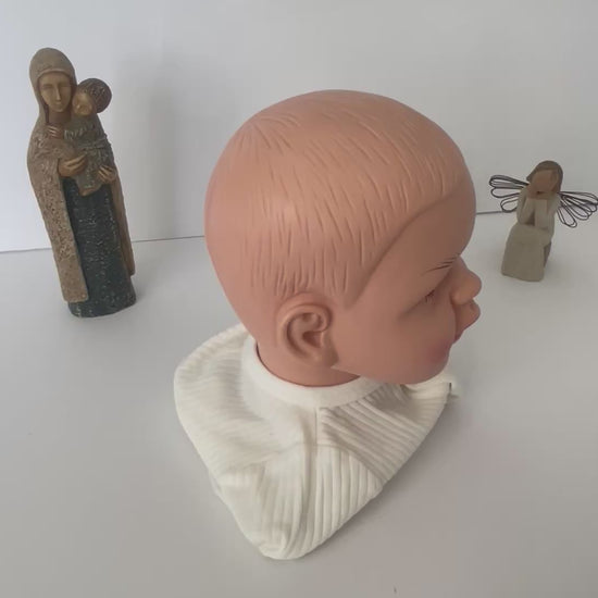 The baby veil is available in a variety of different colors.This veil comes in one of three sizes (Newborn, Infant, or Toddler). A soft, stretchy, and seamless nylon is sewn into the back of the headband, offering a comfortable fit as your little one grows. Prior to purchasing a baby’s veil, please measure baby’s head circumference and refer to the sizing chart found under the product photos for the best fit.