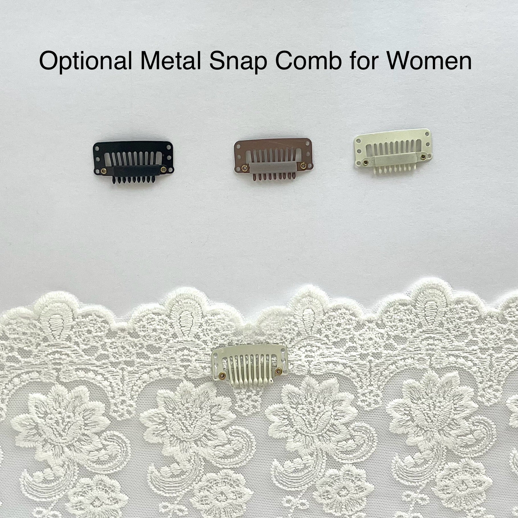 Sewn-in clips may be requested free of charge however they are ONLY available for the women's veils. For women veils, a sewn-in metal snap comb may be requested. Sewn-in clips are not available for baby headband veils. WARNING: CHOKING HAZARD -- Small parts. Clips not intended for children under 3 years old.