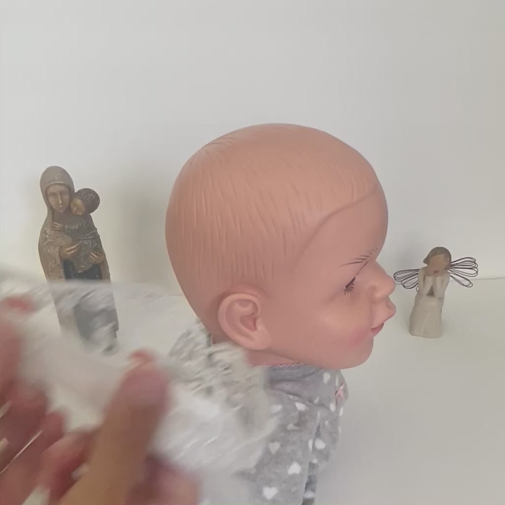 The baby veil comes in one of three sizes (Newborn, Infant, or Toddler) and measures about 12” front to back. A soft, stretchy, and seamless nylon is sewn into the back of the headband, offering a comfortable fit as your little one grows. Prior to purchasing a baby’s veil, please measure baby’s head circumference and refer to the sizing chart found under the product photos for the best fit.