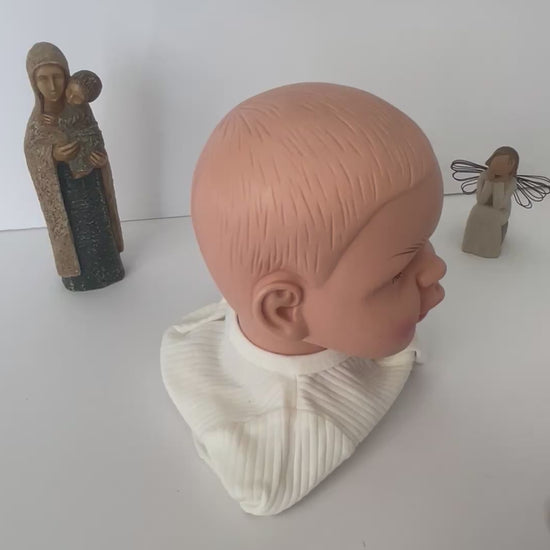This veil comes in one of three sizes (Newborn, Infant, or Toddler) and measures about 12” front to back. A soft, stretchy, and seamless nylon is sewn into the back of the headband, offering a comfortable fit as your little one grows. Prior to purchasing a baby’s veil, please measure baby’s head circumference and refer to the sizing chart found under the product photos for the best fit.